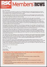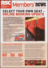 TWELFTH NIGHT w.Richard Wilson transfers to The Duke of York's Theatre (w.cast details and 2 photos); Changes to Members' Priority Booking; Gregory Doran on his production of TWELFTH NIGHT (3 photos); TWELFTH NIGHT Performance Schedule, Ticket Discounts, Seating Plan, Ticket Prices and discounts; Revolutions In Rehearsal: Blog by Jonjo O'Neill (3 photos); Transforming Our Theatres update (3 photos); RSC Toolkit for Teachers [6pp, 8.25x11.75 triple-fold; VG] £2