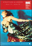 Features on MEASURE FOR MEASURE, THE TEMPEST (w.David Calder), TWELFTH NIGHT (w.Helen Schlesinger), THE MERCHANT OF VENICE (w.Philip Voss), TALK OF THE CITY (w.Kelly Hunter), THE TWO GENTLEMEN OF VERONA, BARTHOLOMEW FAIR, BAD WEATHER, SHADOWS, ROBERTO ZUCCO, and GOODNIGHT CHILDREN EVERYWHERE (Stratford); MUCH ADO ABOUT NOTHING (w.Alex Jennings), HAMLET (w.Alex Jennings), CYMBELINE (w.Damian Lewis), THE UNEXPECTED MAN, EVERYMAN, THE MYSTERIES, and KRAPP'S LAST TAPE (w.Edward Petherbridge) (Barbican); UNCLE VANYA (w.Stephen Dillane), HENRY VIII, CAMINO REAL (w.Susannah York), and CYRANO DE BERGERAC (w.Antony Sher) (West End); ROMEO AND JULIET (Tour) [52pp, 6.7x9.5; with lots of colour illustrations and 25+ production photos, booking details, performance schedule (Feb-May 1998), Stratford and London theatre plans, ticket prices etc. etc.; VG] £4