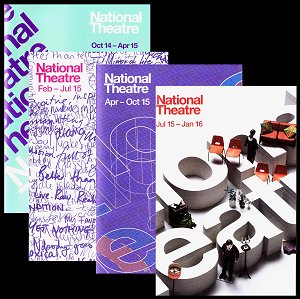 Sharon D Clarke, Lucian Msamati, Giles Terera, O-T Fagbenle, Finbar Lynch, Rosalie Craig, Paul Hilton, Golda Rosheuvel, Susan Brown, Anne-Marie Duff, Julia Ford, Anna Calder-Marshall, Joseph Mydell, Charles Edwards, Sylvestra le Touzel, Doreen Mantle, Michael Elwyn, Madeleine Worrall, Felix Hayes, Nick Holder, Rory Kinnear, Pip Carter, Anna Chancellor, Jonathan Coy, Peter Egan, Beverley Klein, Adrian Lukis, James McArdle, Nina Sosanya, Geoffrey Streatfeild, Jade Williams, Helen McCrory, Tom Burke, Nick Fletcher, Peter Sullivan, Justine Mitchell, Lloyd Hutchinson, Judith Roddy, Ben Miles, Pippa Nixon, Sheila Atim, James Fleet, Clive Francis, Sian Phillips, Danny Sapani, Pal Aron, Javone Prince, Tom Mothersdale, Michelle Terry, Jaygann Ayeh, Louisa Krause, Matthew Maher, Anna Francolini, Sophie Thompson, Dawn Sievewright, Gareth Snook, Kate Duchene, Ruth Wilson, Hammed Animashaun, Tom Edden, Adam Gillen, Elizabeth Debicki, Mark Strong, Stuart Milligan and many others in MA RAINEY'S BLACK BOTTOM, CLEANSED, LES BLANCS, THE SUICIDE, AS YOU LIKE IT, WONDER.LAND, HUSBANDS AND SONS, THE FLICK, EVENING AT THE TALK HOUSE, WASTE, JANE EYRE, HERE WE GO, PEOPLE PLACES AND THINGS, I WANT MY HAT BACK, IPHIGENIA IN SPLOTT, THE SOLID LIFE OF SUGAR WATER, BRAINSTORM, WAR HORSE, THE CURIOUS INCIDENT OF THE DOG IN THE NIGHT-TIME, THE THREEPENNY OPERA, PLATONOV, IVANOV, THE SEAGULL, THE DEEP BLUE SEA, THE PLOUGH AND THE STARS, SUNSET AT THE VILLA THALIA, ANOTHER WORLD, AMADEUS, THE RED BARN, PETER PAN, OUR LADIES OF PERPETUAL SUCCOUR, A PACIFIST'S GUIDE TO THE WAR ON CANCER, HEDDA GABLER, LOVE, THIS HOUSE [Four 8.25x5.9 full-colour booklets, 150pp in all (Oct 2015-May 2016, Feb-Aug, Jun-Nov, Sep 2016-Feb 2017); cast lists, credits, complete diary of performances, photographic feature on each play with casting details, Talks and Events, NT Live, On Tour, NT Future, Food and Drink, seating plans, ticketing information, general theatre info etc.; lots of illustrations and photographs; VG] £8