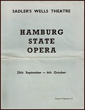Hamburg State Opera: British Premiere; Helga Pilarczyk (as Lulu), Gisela Litz (as Countess Geschwitz), Maria V Ilosvay, Elisabeth Steiner, Georg Mund, Ratko Delorko, Toni Blankenheim (as Dr Schon), Kurt Rusche (as Alwa), Peter Roth-Ehrang, Sigmund Roth, Jurgen Forster, Karl Otto, Erich Zimmermann, Guido Diemer, Ernst Ludwig (as Jack the Ripper); c:Leopold Ludwig, dir:Gunther Rennert [20pp, 8.75x11; 33 photos of the cast and the productions, programme notes, synopses, company list, history of the Hamburg State Opera; w.separate cast list; VG] £4